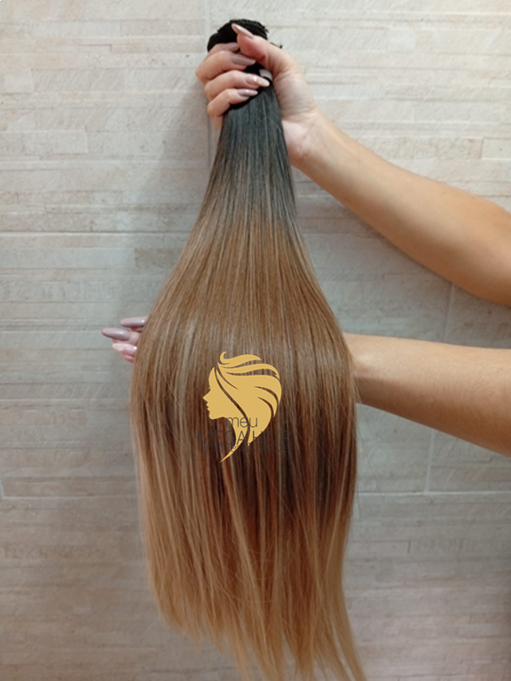 Aplique de Cabelo Loiro Ombre Hair 60cm Humanizado Fibra Russa na Tela