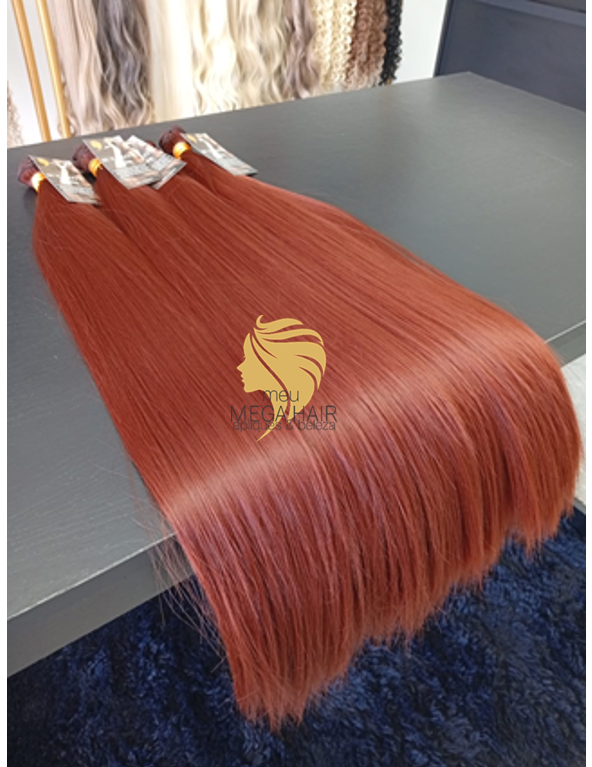Cabelo Ruivo Liso 70cm Humanizado Fibra Russa na Tela