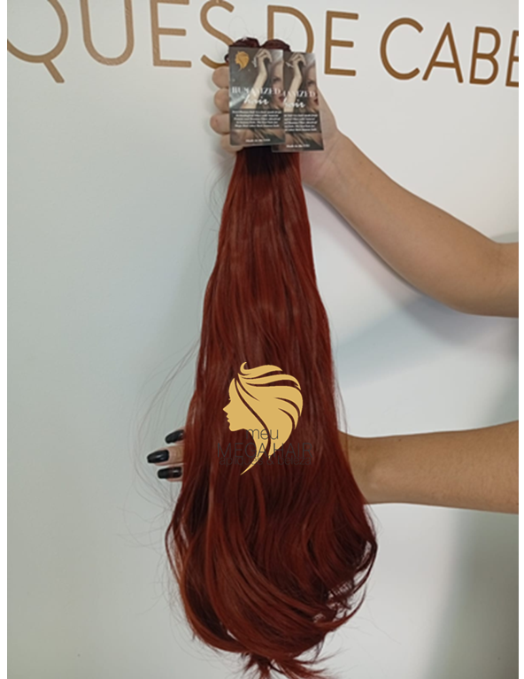 Cabelo Ruivo Ondulado 60cm Humanizado Fibra Russa na Tela