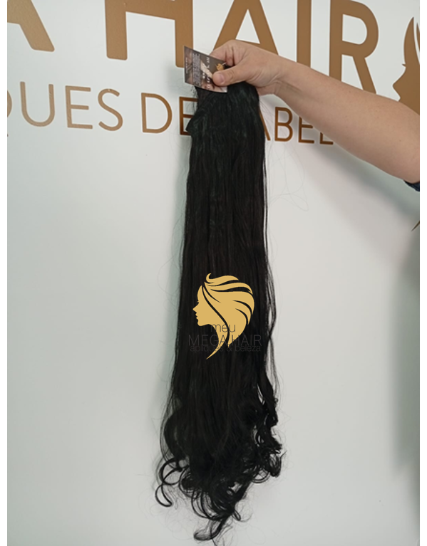 Cabelo Tic Tac 2 Telas 70/75cm 150grs 100% Humanizado Ondulado Preto Fibra Russa