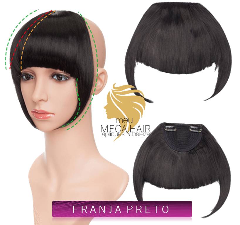 Franja Preto cor 1# Cabelo Humanizado Tic Tac
