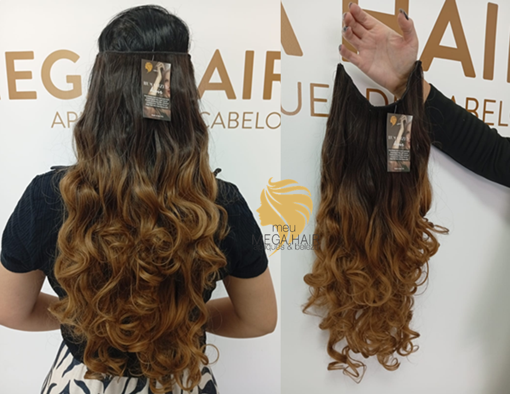 Cabelo Fio Invisível Tic Tac Morena Iluminada Ondulado 70cm 150grs Humanizado Fibra Russa