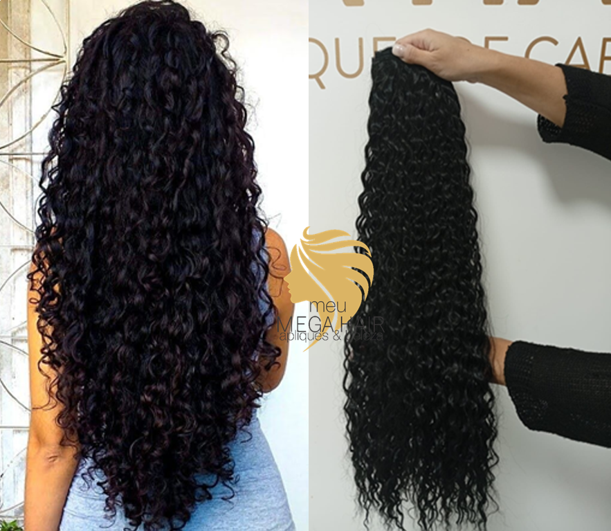 Cabelo Cacheado Preto Tic Tac 2 Telas 70/75cm 150grs 100% Humanizado Fibra Russa