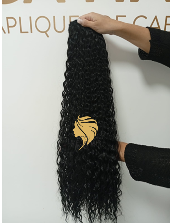 Cabelo Cacheado Tic Tac 3 Telas 70/75cm 230grs 100% Humanizado Preto Fibra Russa