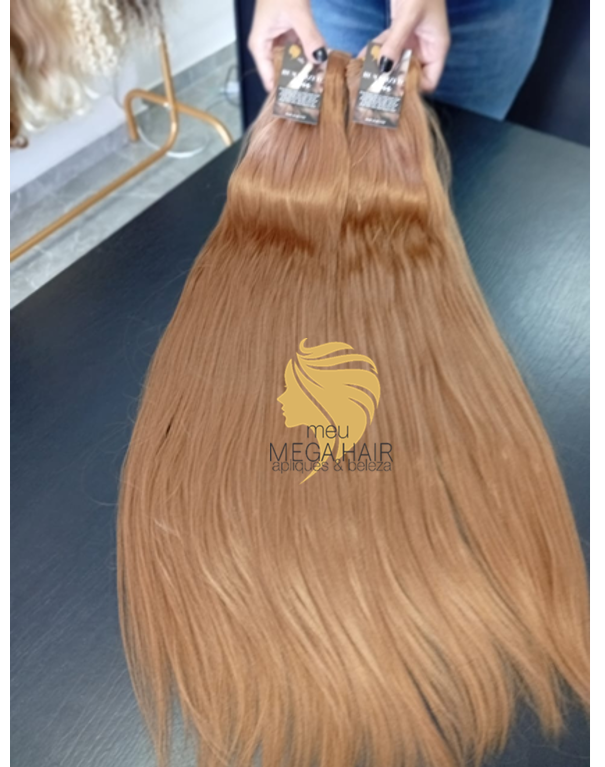 Aplique de Cabelo Liso Mel Acobreado 70cm 100% Humanizado Fibra Russa