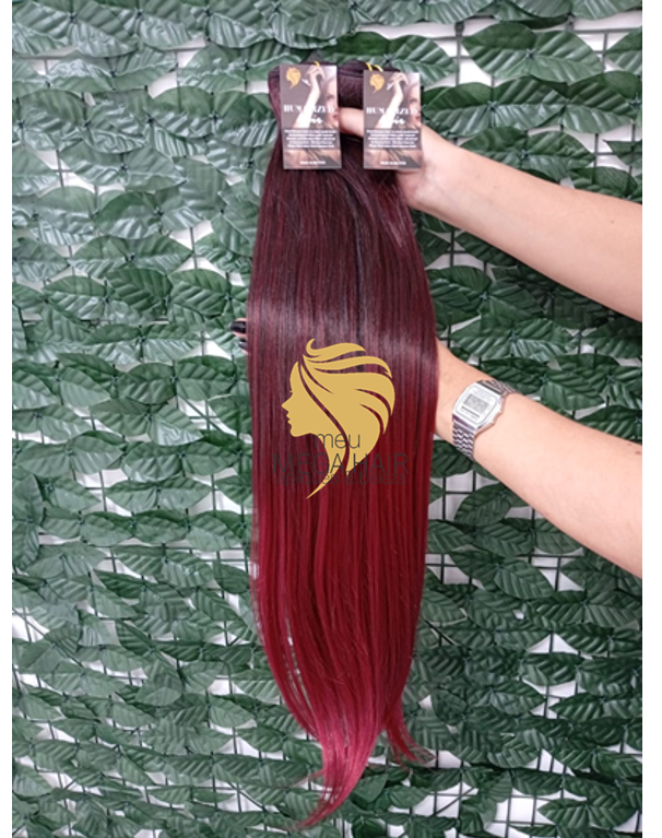 Aplique de Cabelo Liso Marsala 50cm 100% Humanizado Fibra Russa