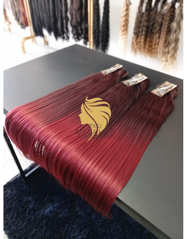 Aplique de Cabelo Liso Marsala 60cm 100% Humanizado Fibra Russa