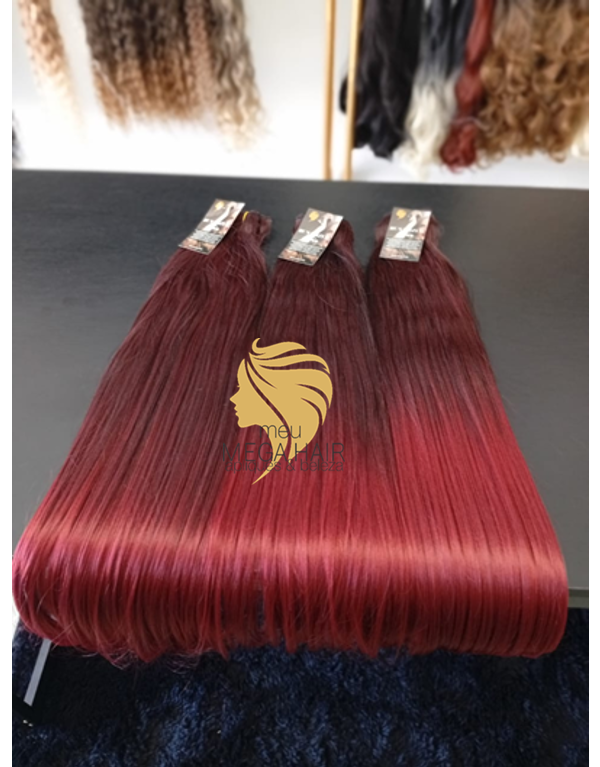 Aplique de Cabelo Liso Marsala 70cm 100% Humanizado Fibra Russa